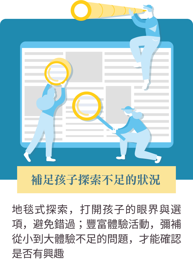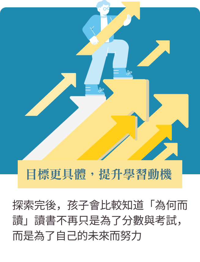 想像一下,如果孩子因為探索找到自己喜歡的領域,未來在職場時做有興趣的事情,每天更有鬥志與自信,讓孩子更能掌握「人生的選擇權」,而不是交給命運,這是不是一件很美好的事情?