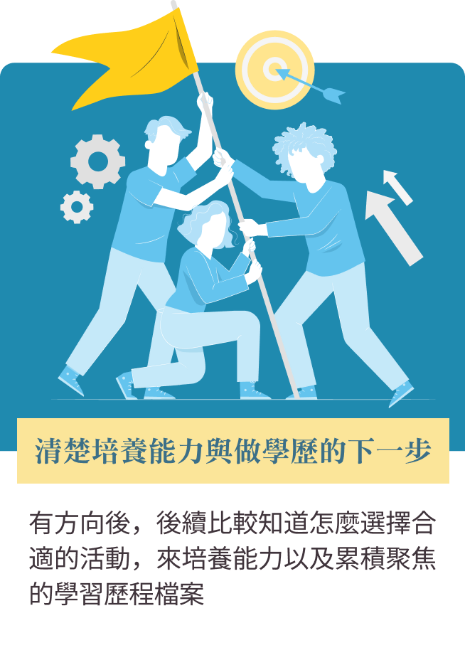 因此,我希望讓學生「探索在起跑點」。讓學生在高中階段,還有時間還有選擇權時,能早點探索出自己「嚮往與想要發展的領域」,然後「有效的累積」,讓孩子有更高的機會變得更好與更喜歡自己,這就是我認為的價值,也是我的核心理念與願景。