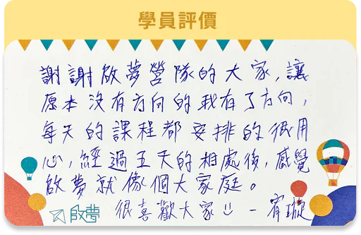再者,啟夢營隊的 CP 值可用兩個部分進行思考與評估:
