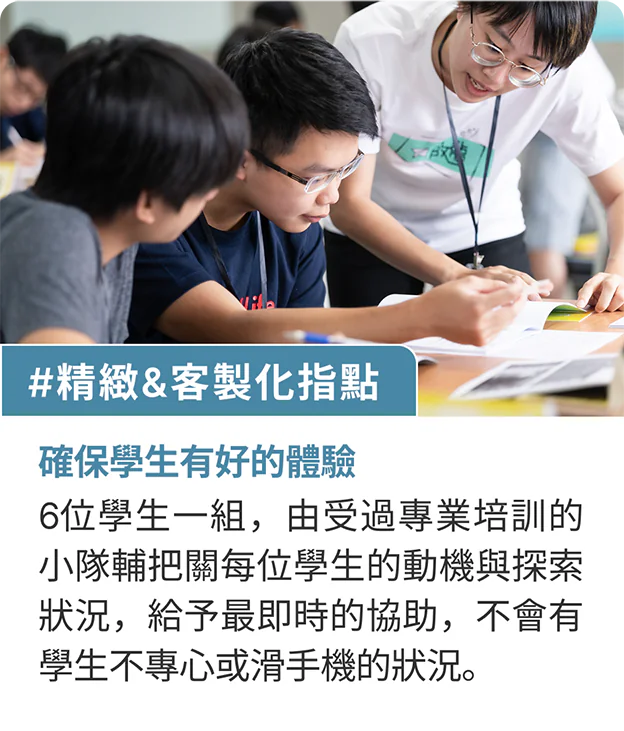 ★師生比為1:6,由受專業培訓的大學生擔任隊輔,細心引導活動進行
